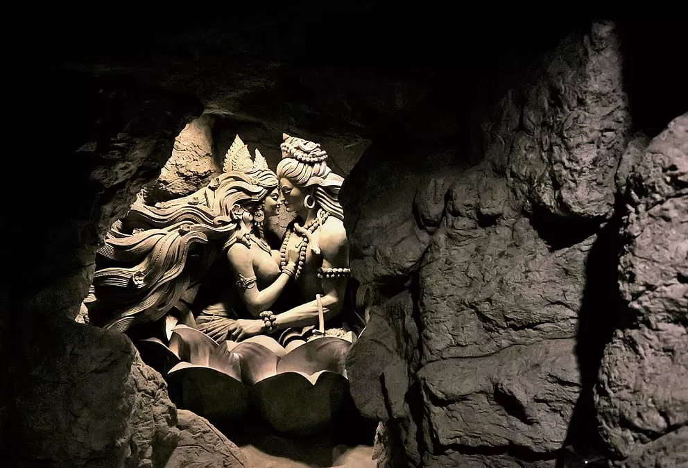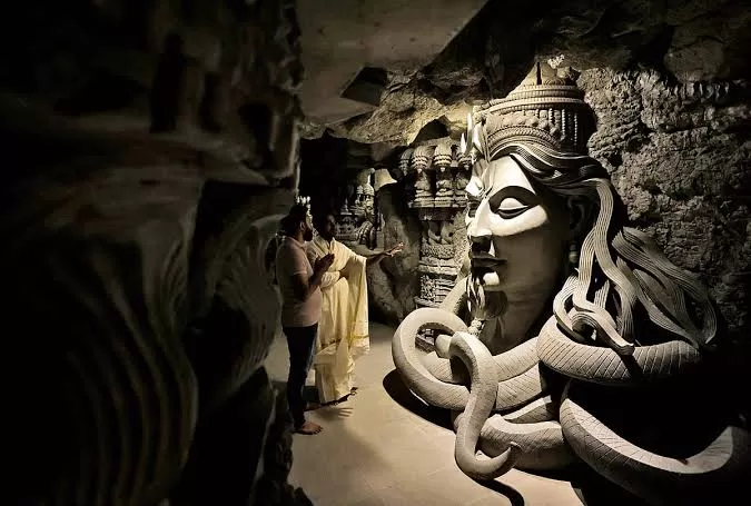 There is a small cave attraction near the temple complex. Inside the cave, you can see beautifully crafted sculptures representing important moments from Hindu mythology and Lord Shivaβs history.