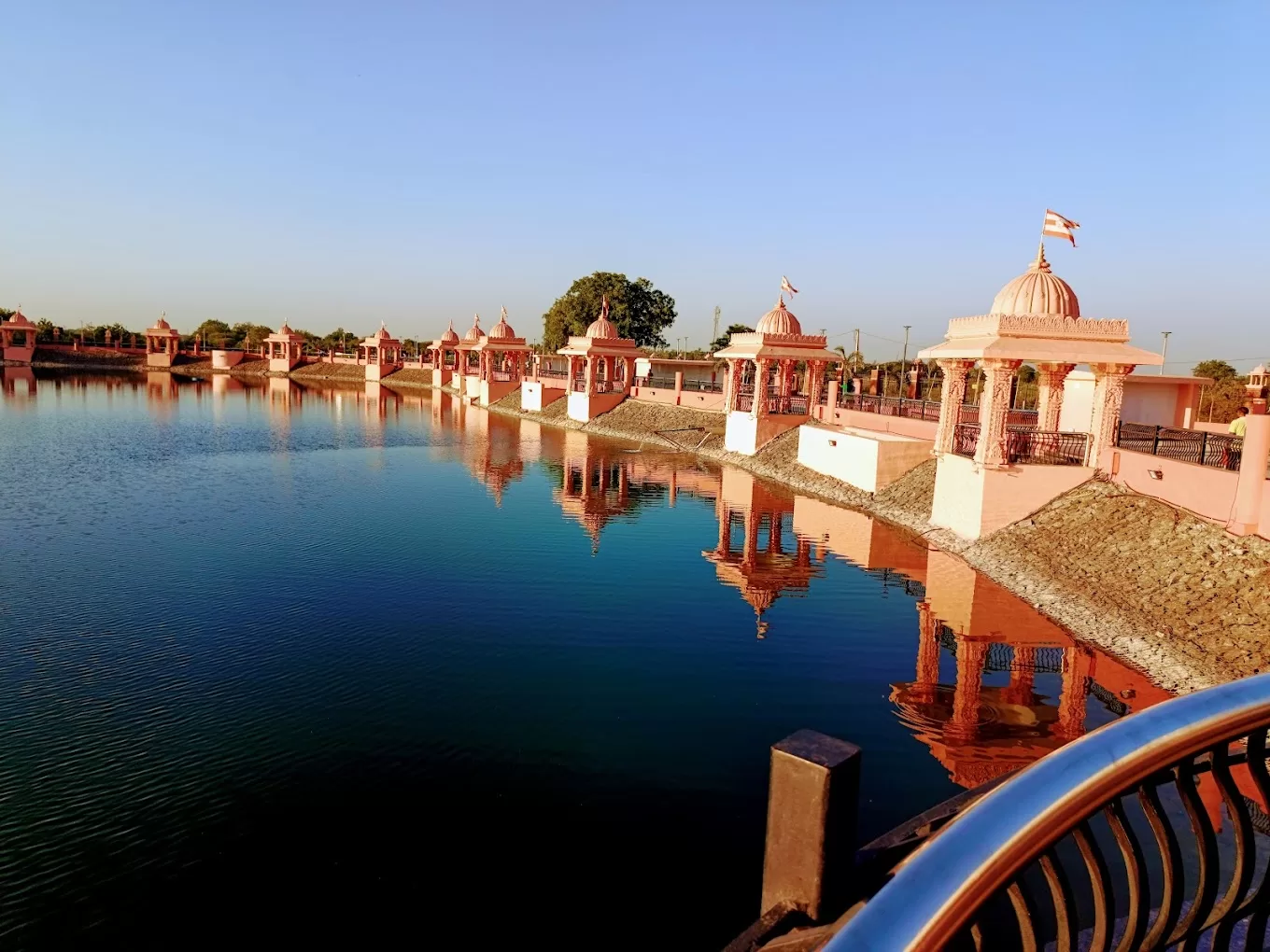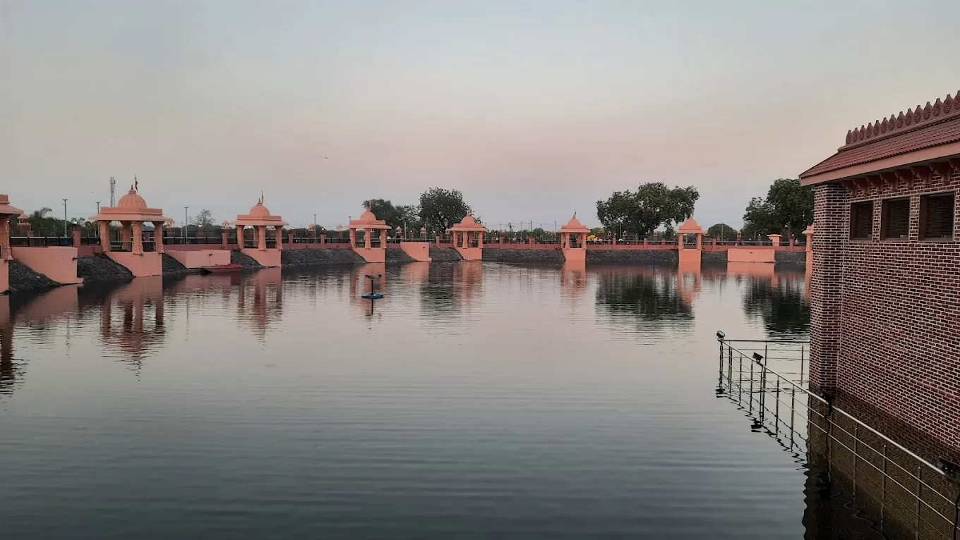 About: A peaceful lake surrounded by temples and greenery, ideal for a spiritual retreat.