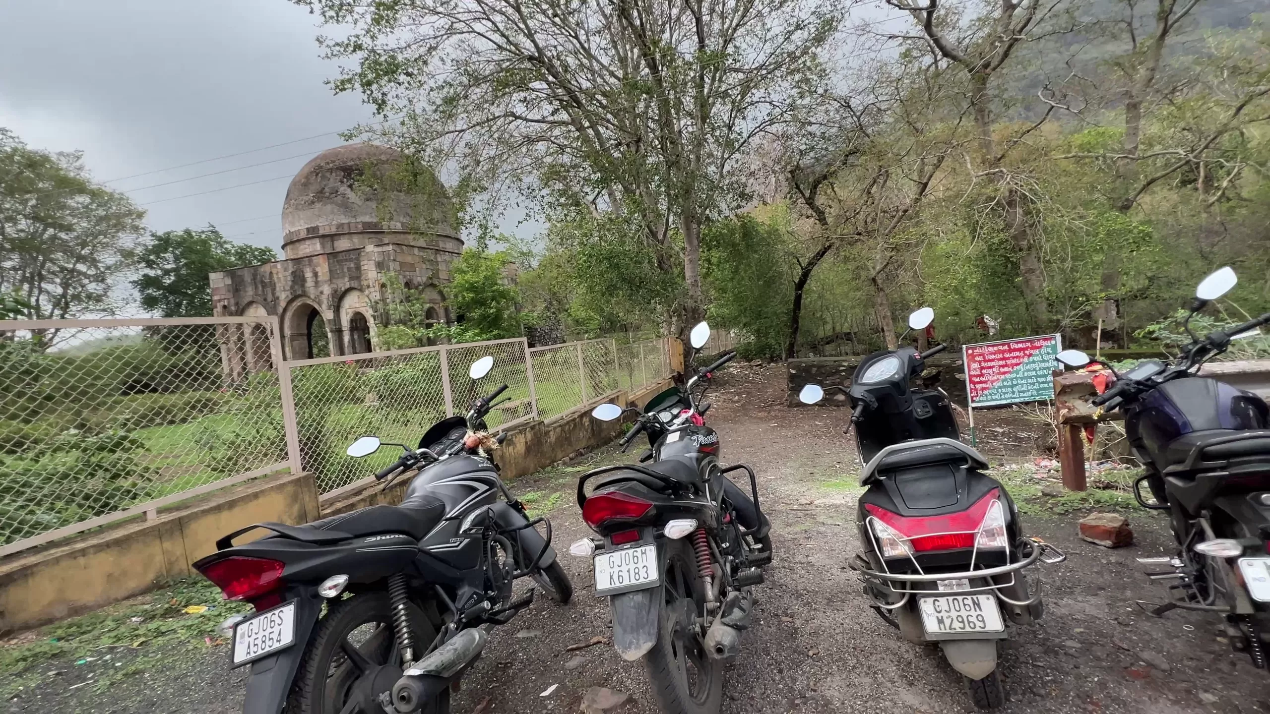 Once you reach the Pavagadh base, head toward the ancient dome-shaped structure located near the parking area visible in the image below. This spot, just off the main road, is where your trek officially begins.